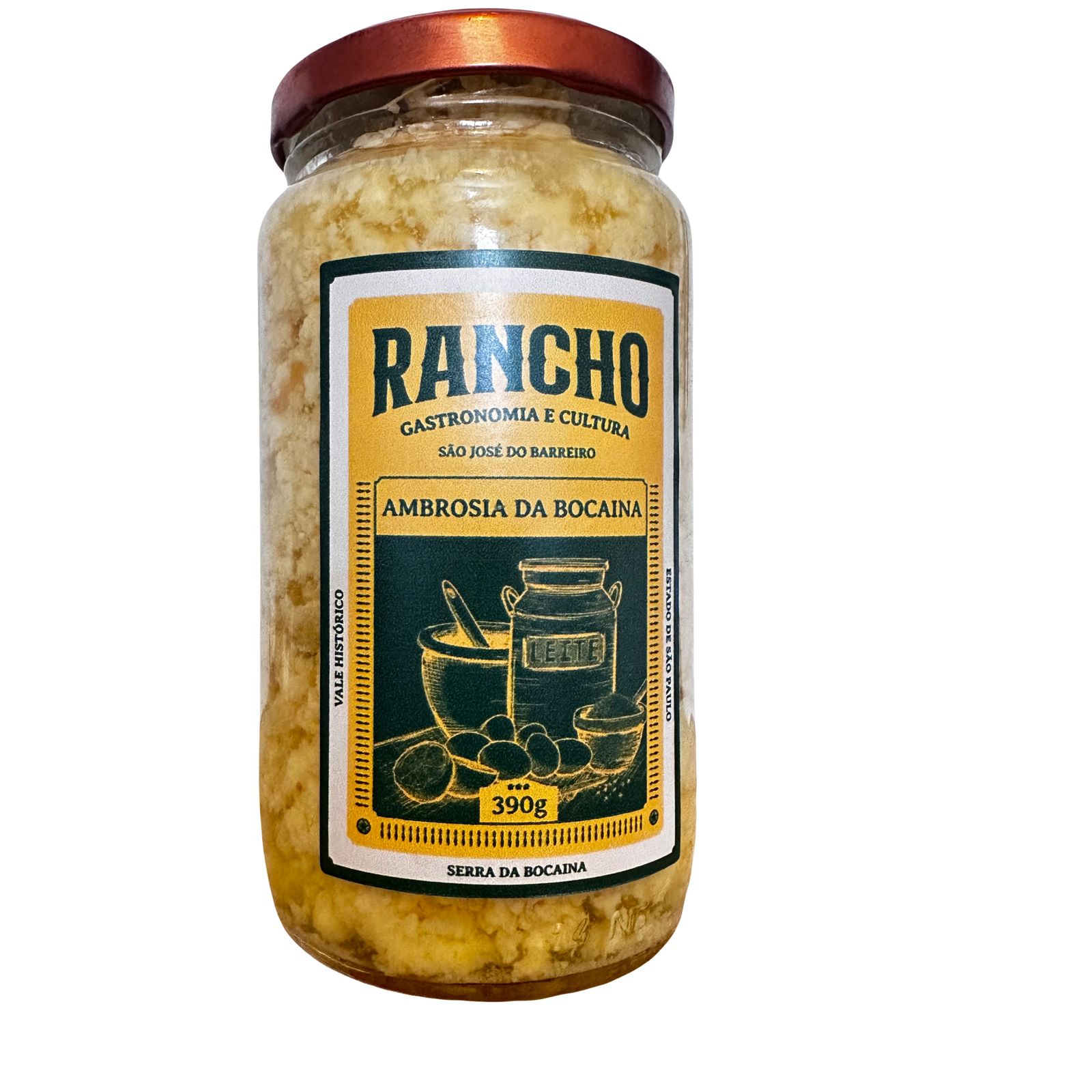 O doce Ambrosia da Bocaina Rancho, produzido artesanalmente é cozido lentamente até atingir uma consistência cremosa e espessa seguindo a receita tradicional.